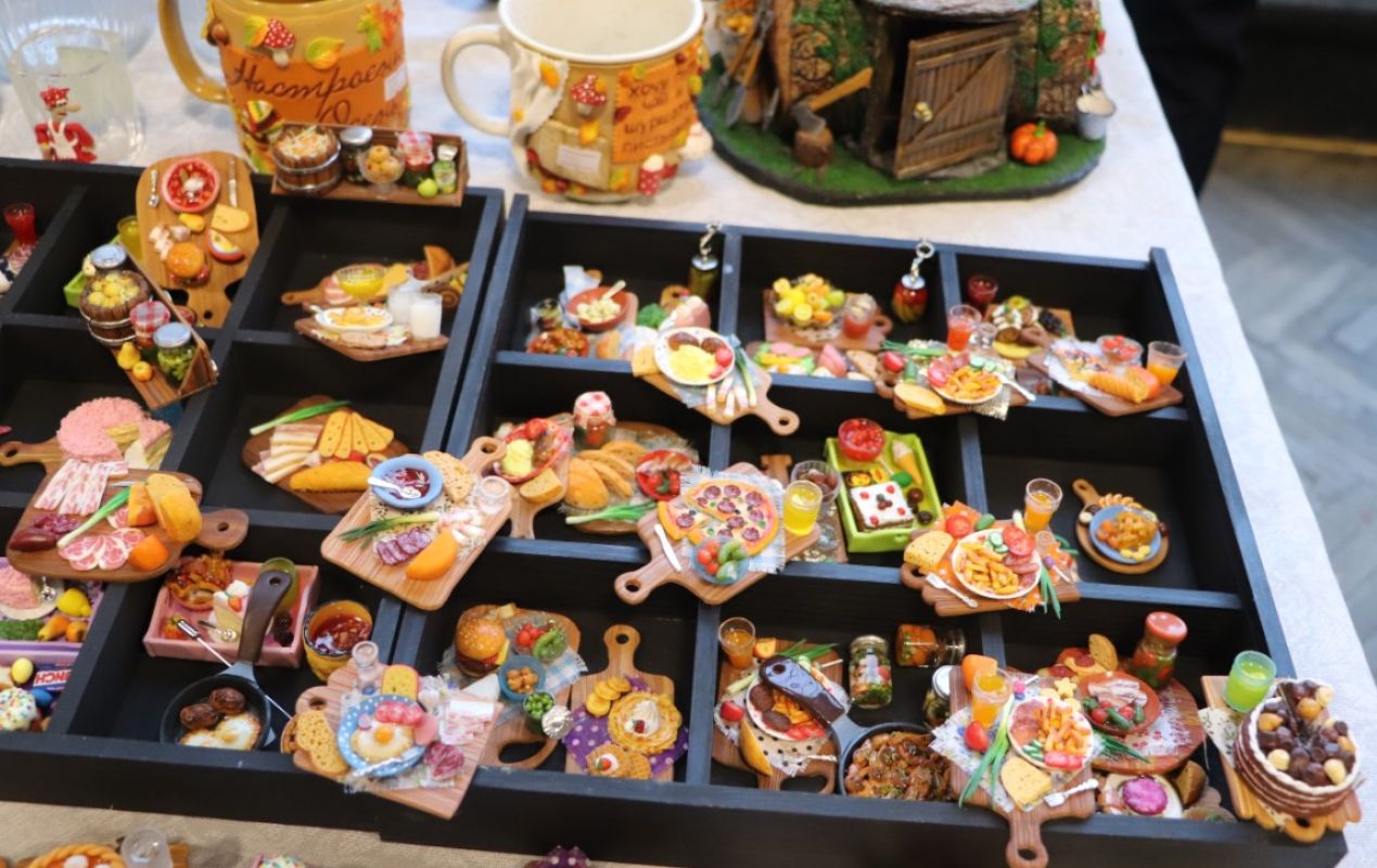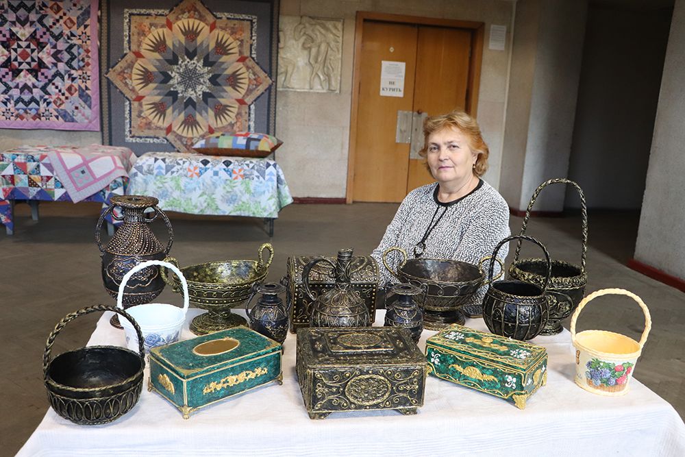 Среди работ, представленных на выставке, можно было увидеть декоративные поделки из самых разных материалов, игрушки и посуду. Одной из самых интересных экспозиций выставки стали интерьерные рыбы Эдуарда Лиманкина из дуба и красного дерева. Немало зрителей собрали вокруг себя и работы Ларисы Кнорр, изготовленные с помощью нанесения на предмет слоя металла гальваническим методом.