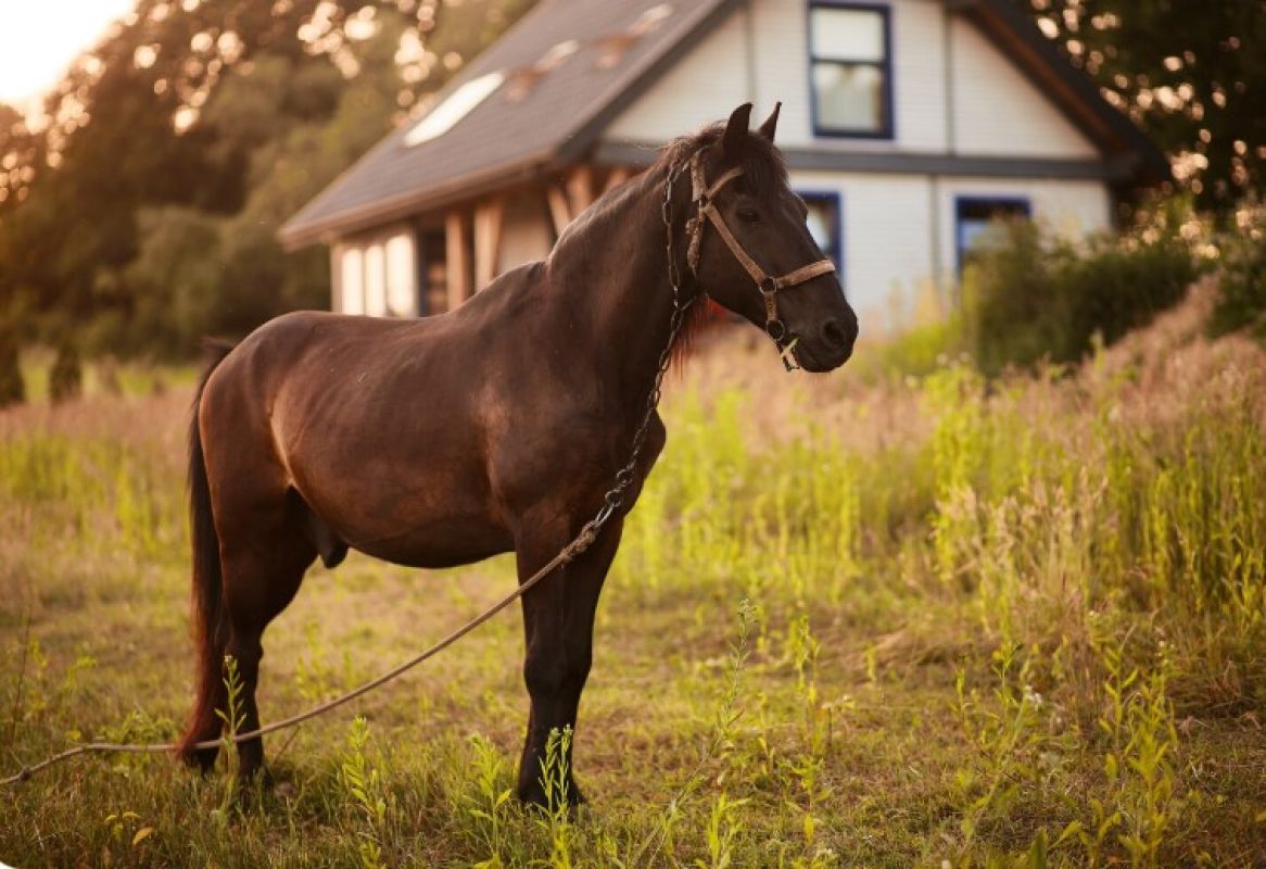 Приехав в назначенное место, мы заметили загон, в котором среди всякой живности сразу привлекала внимание статная белолобая лошадь с непослушной челкой и в белых «носочках». Из дома вышел хозяин, и мы направились знакомиться с животным.