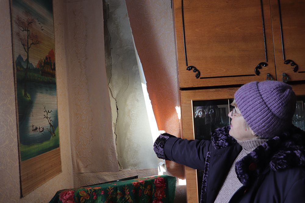 – Когда шли дожди, в квартире протекала крыша, – рассказала 91-летняя Агния Павловна. – Ее повредило во время удара, и ее до сих пор не перекрыли. Рабочие накрыли ее брезентом, но не очень тщательно, и вода нашла дорогу внутрь помещений. Текла по дверям и окнам балкона, в спальне, пришлось подставлять и тазы, и чашки, и кастрюли. В квартире холодно, сквозит, приходится тепло одеваться и ходить в зимней обуви. Слишком много тепла уходит сквозь фанеру на забитых оконных проемах.