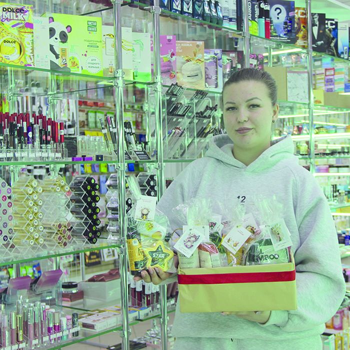 – У нас в магазине можно приобрести оригинальную парфюмерию как на разлив, так и полноразмерным флаконом. Но это не все: у нас есть много арабской парфюмерии, которая немного дешевле в цене, но практически не уступает в качестве оригиналу, – поделилась Екатерина. – Большой выбор шампуней разных фирм из профессиональных линеек от «Estel» (Эстель) до «Kapous» (Капус). Сейчас многие любят фирмы «The Act» (Зе Экт) и «ARAVIA» (АРАВИА). В нашем магазине мы можем подобрать комплексный уход для любой кожи. Также мы предлагаем готовые наборы, или, по желанию, можете придумать ваше собственное наполнение, которое продавцы эстетично оформят.