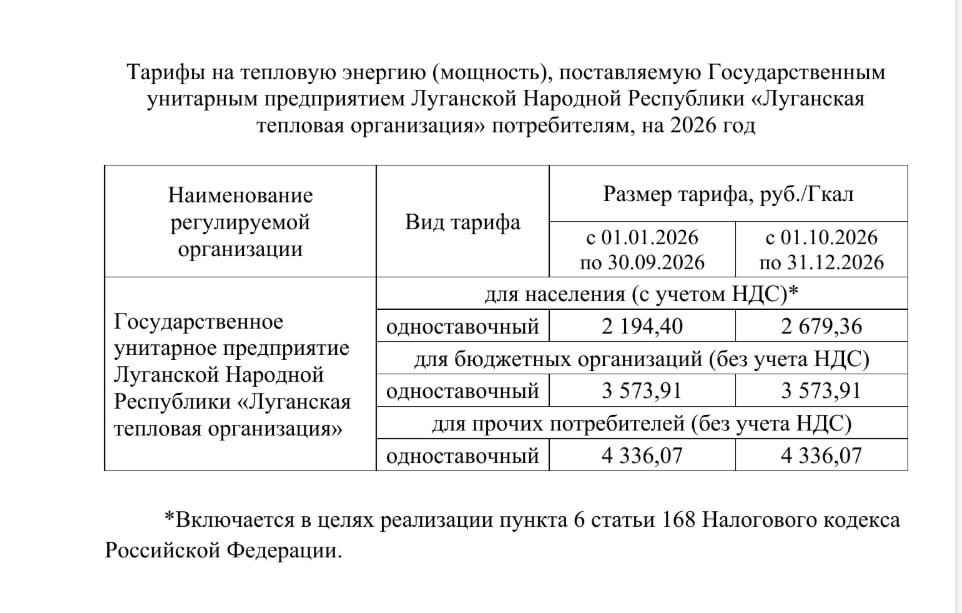 Комитет по ценоообразованию ЛНР установил новые тарифы на теплоснабжение, которые будут действовать с 1 января и 1 октября 2026 года.