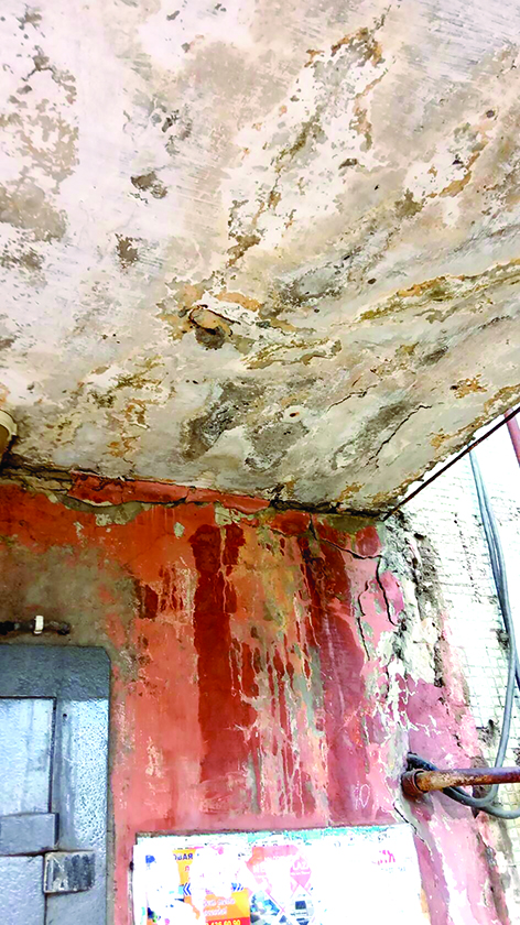 В подтверждении этих фактов жители принесли фотографии. Снимки наглядно демонстрируют суть проблемы, которой уже несколько лет. Чтобы попасть в подъезд или выйти из него, жителям приходится преодолевать своеобразную полосу препятствий. В любой момент на голову может упасть часть козырька – со временем он раскрошился, по краям торчит острая арматура. Во время дождя проблема усугубляется. От влаги на некогда светлой плите и стенах образовываются потеки воды, уже появилась плесень, стали рушиться ступеньки.