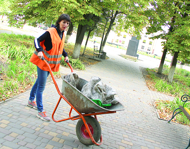 Рабочий график большинства из них начинается с восьми утра. К этому времени наш трудовой десант, в который попала я, был возле Управления по жизнеобеспечению г. Молодогвардейска. Краткий инструктаж, выдача рабочего инструмента и одежды. Нам вручили метлу, совок и тачку для вывоза мусора. Из униформы – яркая оранжевая жилетка.