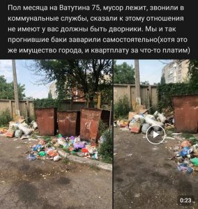 Отходы несколько недель находились в местах сбора мусора на таких кварталах, как Шевченко, Мирный, Ватутина. В соцсетях местные жители улиц Советская, Тимирязева, Будённого, Линёва жаловались на неприятный запах в окрестностях и захламление территории.