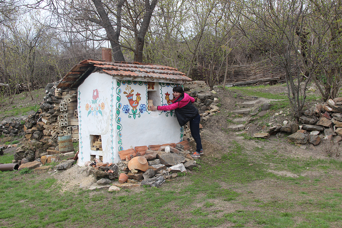 Гончарная мастерская выполнена в необычном стиле. На подворье – плетеный забор, кувшины на изгороди, огромная печь для обжига готовых изделий, сделанная из дерева телега, лошадь из старых покрышек. Есть большой павильон на улице, где проходят занятия по гончарству.