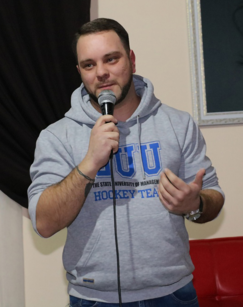 Stand-up – одно из направлений комедии, интеллектуальный юмор, где комик не просто шутит, а делится своими мыслями, точкой зрения или же болью. Можно сравнить жанр с походом к психологу. Смех – хорошая реакция на все жизненные неурядицы. Я являюсь организатором таких мероприятий, а также активно представляю наш город в этом жанре. Приезжают комики из Стаханова, Луганска. Самым ярким мероприятием был приезд Игоря Пименова в Краснодон. Игорь – уже медийная личность, участник ТВ-шоу "Рассмеши смешного", "Русские не смеются", а также Высшей лиги КВН.