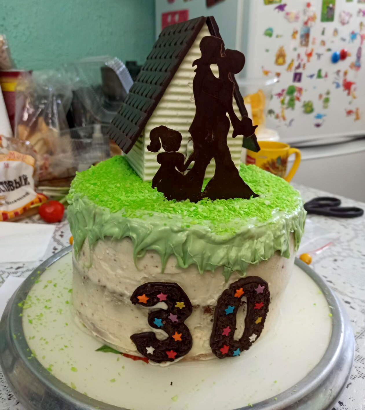 На день рождения своего мужа она собиралась удивить его необычным тортом, но столкнулась с проблемой отсутствия украшений, которые бы подчеркнули красоту вкусного сюрприза. Не теряя времени, девушка решила изготовить украшения самостоятельно. Через несколько часов кропотливого труда кулинарный шедевр был готов. Он по праву стал украшением стола.