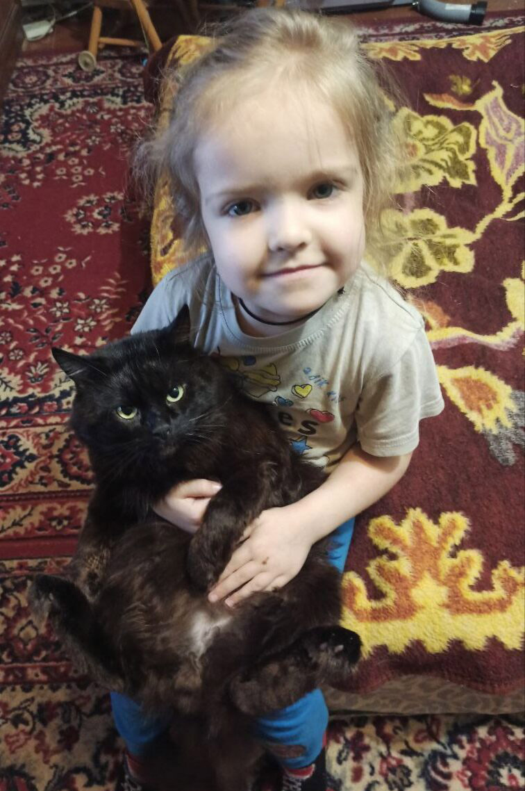 – В жарком 2014 году мы вместе с детьми выехали в Россию. В нашей квартире жила наша мама, папа следил за хозяйством в частном доме. Чтобы мама не скучала в одиночестве, папа принес ей маленького черного пушистого котенка. Когда вокруг были слышны выстрелы, мама старалась все внимание отдавать коту. Так она отвлекалась от происходящих событий. К сожалению, мама умерла. В память о ней остался наш Сема, сейчас он всеобщий любимец, – поделилась Дарья.