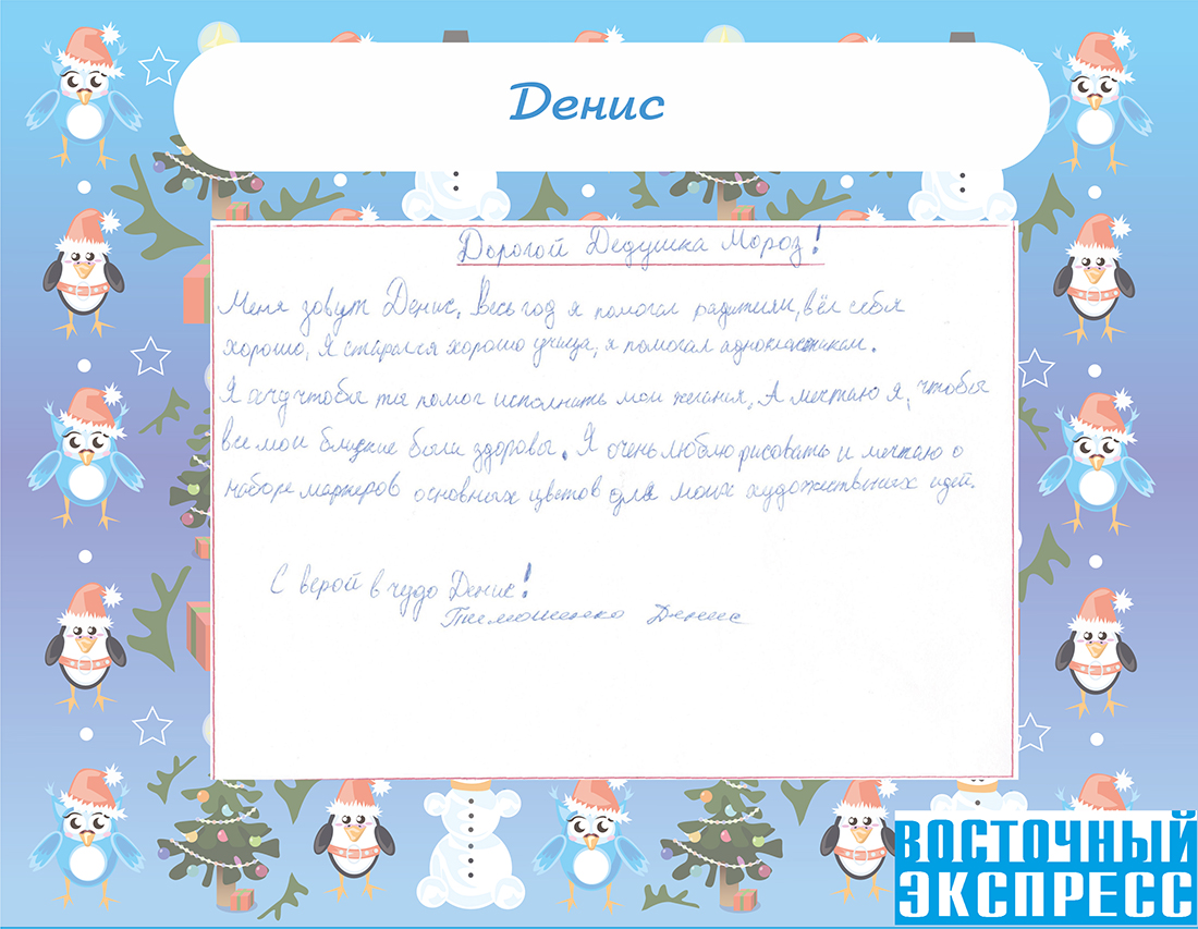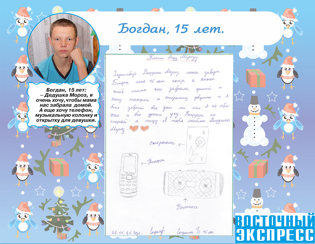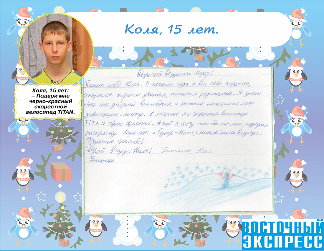 За 30 дней до Нового года мы решили узнать, о чем они мечтают. Как оказалось, мальчишки и девчонки загадывают волшебнику самые сокровенные желания. Среди просьб встречаются очень трогательные, от которых на глазах наворачиваются слезы.