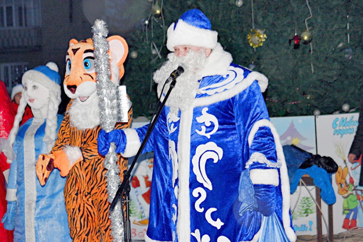 На центральной площади Краснодона открытие елки состоялось 24 декабря. Несмотря на холод, участников собралось немало. Горожан поздравил глава администрации Краснодона и Краснодонского района Сергей Козенко. Затем эстафету приняли главные герои праздника – Дед Мороз и Снегурочка, которые выехали к зрителям на украшенных самокатах. Символом следующего года является тигр, поэтому именно этот персонаж пришел вместе с ними. Помогали ему веселый бычок и снеговик, которые вовлекли всех присутствующих в волшебное действо. Сказочные персонажи проводили интересные подвижные конкурсы.