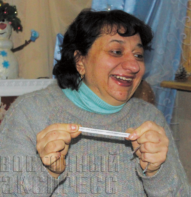 – Можно сказать, что да, отмечаем в соответствии с традициями. Собираемся в тесном семейном кругу, накрываем стол, встречаем гостей. Мы пельмени готовим, а не вареники. Кладем туда монетки, соль, перец, сахар. Монетка – к достатку, соль – будут разочарования, сахар – жизнь будет сладкая, а перец – горячая. За столько лет мне все попадалось. Мы серьезно к этому не относились, – просто создавали хорошее настроение. В гадания верю. Еще перед замужеством гадали: кидали сапог, и, мол, куда он посмотрит, оттуда и жених будет. Так у меня и получилось. А вообще, раньше гадали редко. Предсказание мне понравилось, очень бы хотелось, чтобы оно исполнилось. Ну, а как иначе, если написано: «И зимой и, летом озарится все волшебным светом». Да это же замечательно!