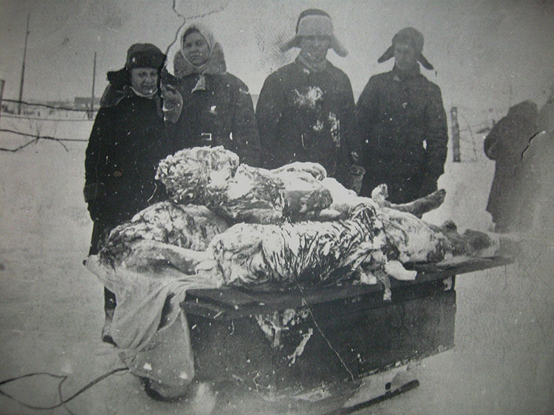 Поднятие из шурфа тела подпольщиц, 1943 г.