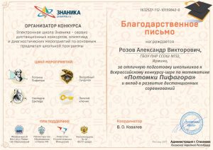 Ученики готовились к конкурсу под руководством учителя информатики Розова Александра. Организаторы конкурса отметили его благодарственным письмом.