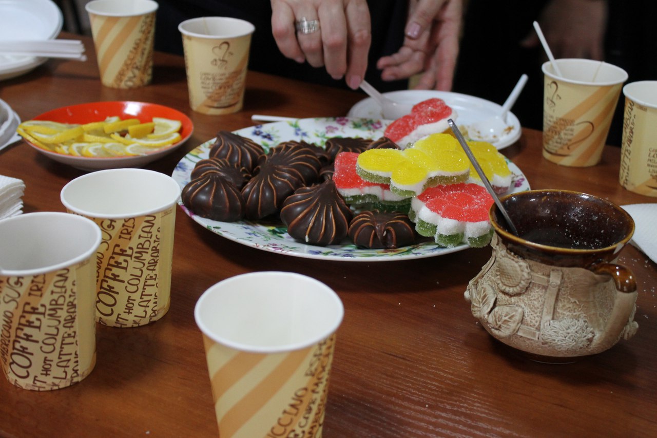Как только благодарности были вручены, теплые слова сказаны, большая дружная семья собралась за сладким столом.