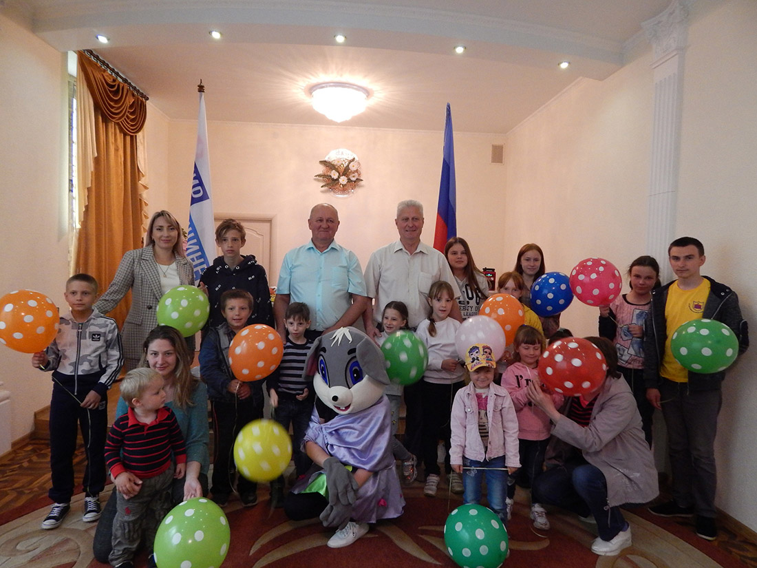 Для создания праздничной, радостной атмосферы и поддержки детей, оставшихся без попечения родителей, для воспитанников Краснодонского учебно-воспитательного комплекса «Забота» также была организована праздничная программа. После нее в управлении образования ребят ждала встреча с главой администрации Краснодона и Краснодонского района Сергеем Козенко. Он вручил праздничные подарки – мячи, роликовые коньки и наборы для игры в бадминтон. Очень порадовал детей праздничный фуршет с пиццей и любимым лакомством – мороженым.