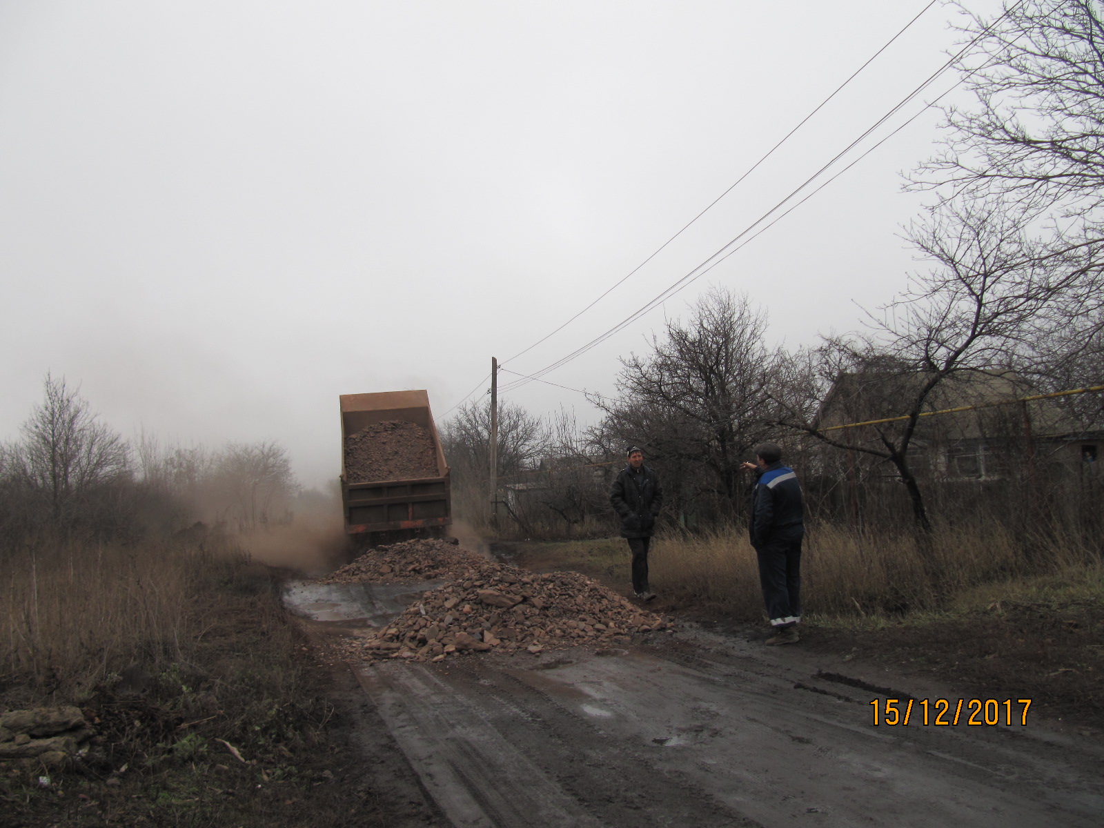 Подъезжаем к тому самому месту, и водитель начинает явно нервничать: «Здесь?! Не знаю, получится ли засыпать!». – Я подумала, что КАМАЗ со своими габаритами не сможет заехать в проулок, но причина оказалась совсем в другом. «Здесь тетка вредная живет. Когда в прошлый раз мы подсыпали этот участок, она просто стала на глухую оборону, и не позволила нам заполнить выбоины. В итоге мы были вынуждены уехать гружеными!». Шофер выскочил из кабины, а следом за ним, зацепившись для подстраховки за ручку дверцы, из пассажирского сидения сползла и я. Подъехали второй КАМАЗ и грейдер. Навстречу нам изза поворота неспешно выходят жители улицы. Сразу задаем провокационный вопрос: «Кто чем недоволен?». В ответ слышим громкие возгласы: «Да сколько можно! Ни проехать, ни пройти! Сыпьте, ради Бога!». В мужской толпе взгляд выхватывает немолодую женщину – похоже, «та самая», она в унисон остальным, философски рассуждает на тему: «Сколько можно жить в такой грязи!», пока из кузова не вываливается очередная порция породы. Облако рыжей пыли сходу охватывает несколько домов, и с возгласом: «Все ж на хату!», хозяйка, панически схватившись за голову, скрывается в запыленных недрах своего двора.