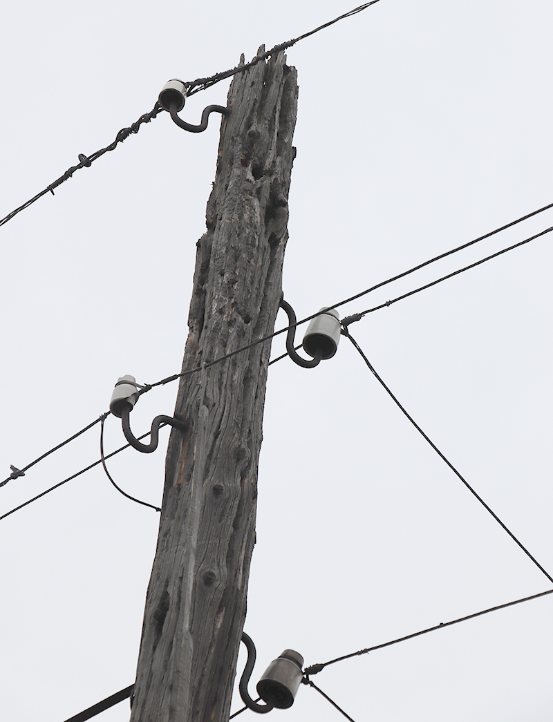 Мы приехали. На улицах Новоселов, Должанской и Совхозной перепады напряжения за прошедший год были настолько частыми и «результативными» в плане потерь бытовой техники, что можно вручать премию в номинации «Невезуха». По всей длине улицы Новоселов провода висят безо всякого натяжения и раскачиваются на ветру, как качели. Опоры держатся только на честном слове, и имеют такой большой крен от вертикали, что страшно мимо пройти, – грозят рухнуть на зазевавшего прохожего. Ветхие настолько, что в некоторых местах можно увидеть пролетающих в небе птиц, верхушки и нижняя их часть давно сгнили, расслоившиеся по волокнам дерева.