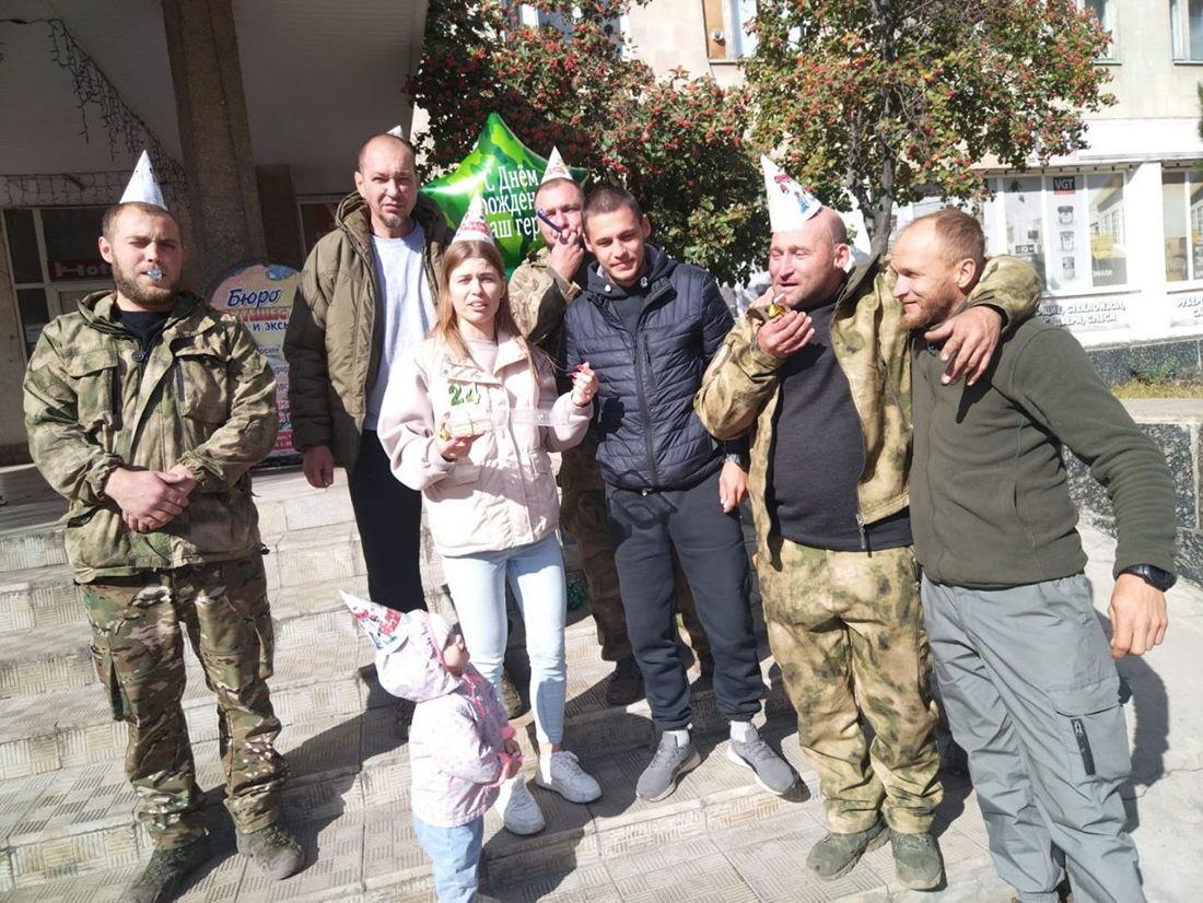 Группа людей возле нашего офиса с воздушными шарами, звонкими дудками и красиво упакованным подарком поздравляла бойца. Мужчина был явно смущен, но рад происходящему. Подарок вручали две активные девушки – Ева Шойгу и Елизавета Кузнецова из московского города Чехов. Свою дружную команду они называют «Чеховские птички». Девушки готовили к отправке очередной груз гуманитарной помощи для военных. Познакомившись с ними, я узнала, что в гостинице они останавливаются перед дальней и опасной дорогой к линии фронта, и успела задать несколько вопросов до того, как они отправились дальше.