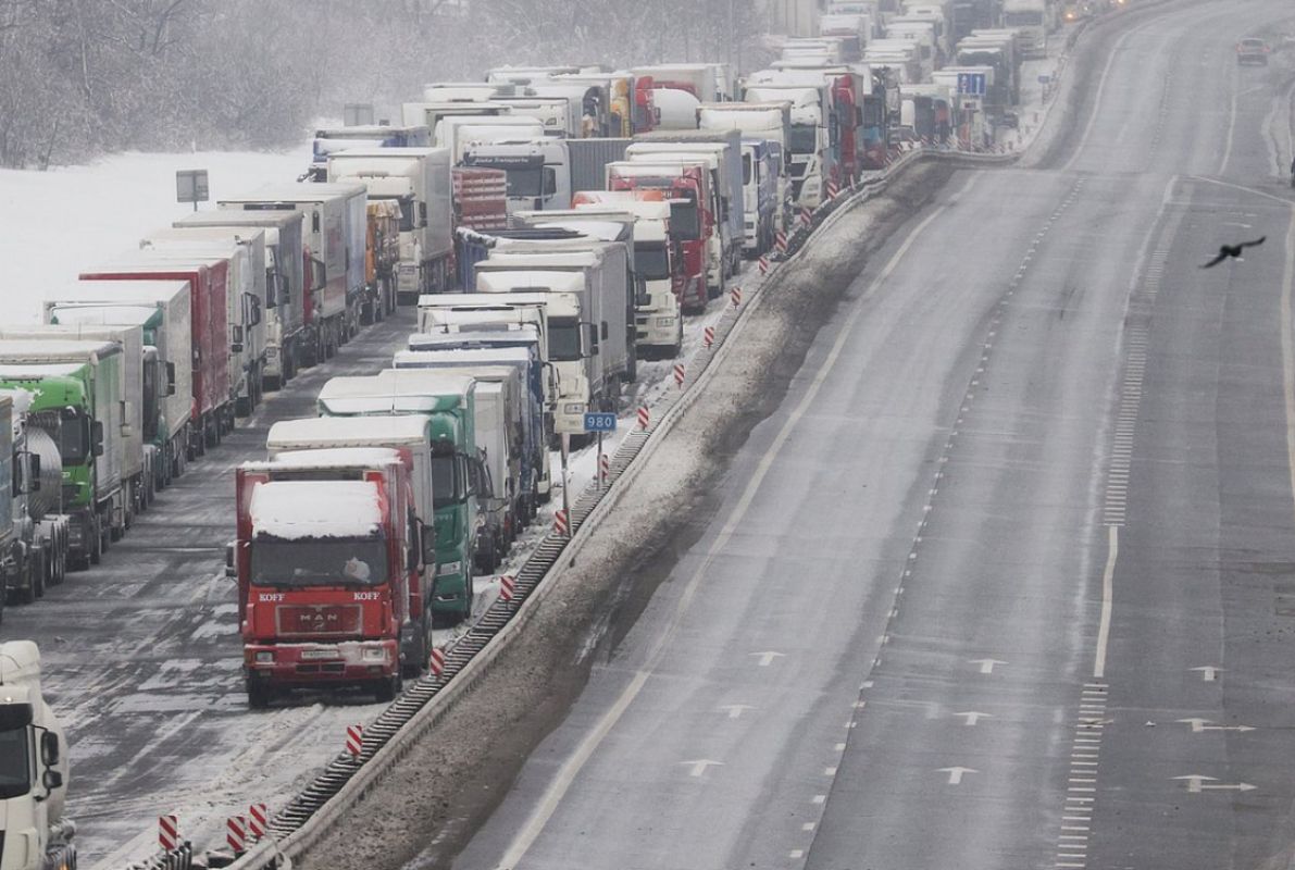Снегопад спровоцировал 20-километровую пробку на трассе М-4 в Ростовской области
