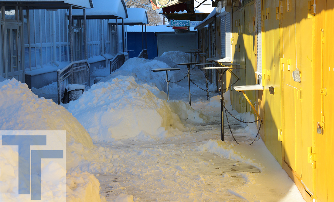 Центральный рынок: снежная чистота и безлюдье понедельника