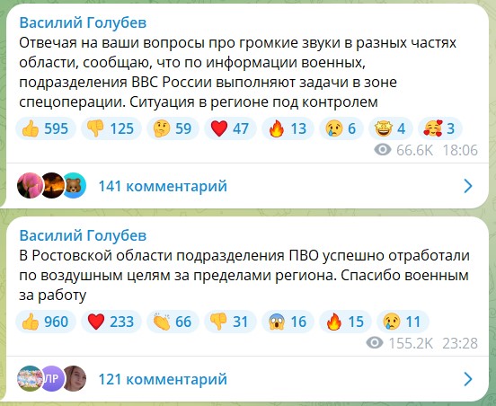 Позже он добавил, что в Ростовской области подразделения ПВО успешно отработали по воздушным целям за пределами региона.