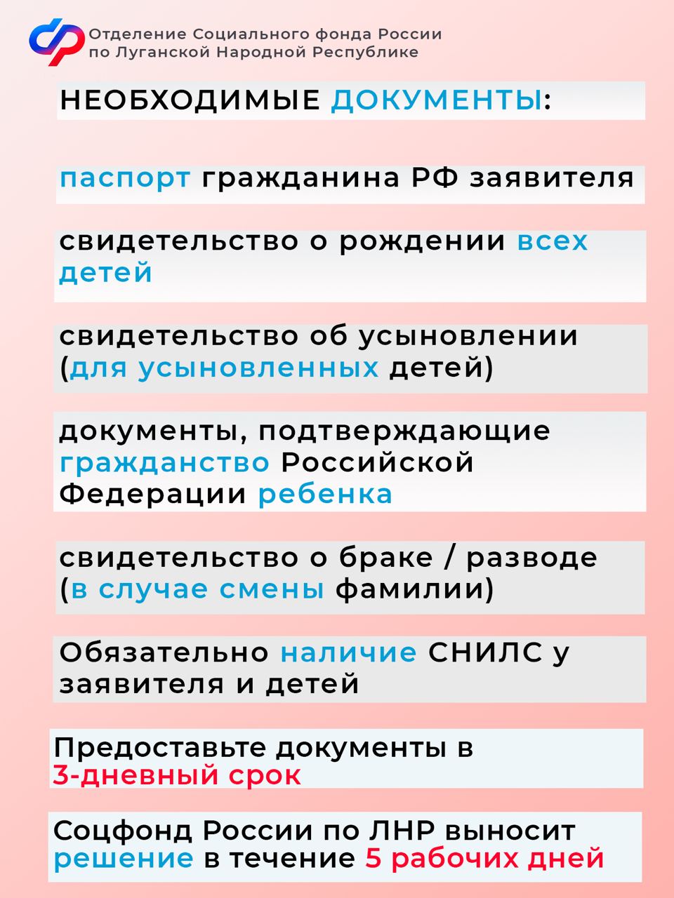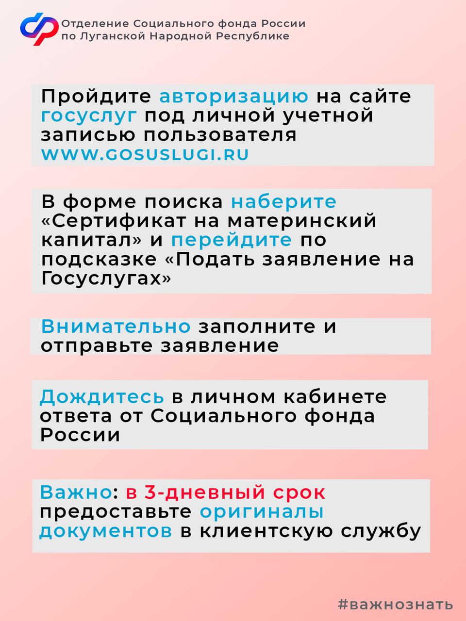 Приём документов на сканирование в клиентских службах осуществляется отдельными специалистами в порядке живой очереди. Отделение Соцфонда России по ЛНР оформит сертификат в течение 5 рабочих дней.