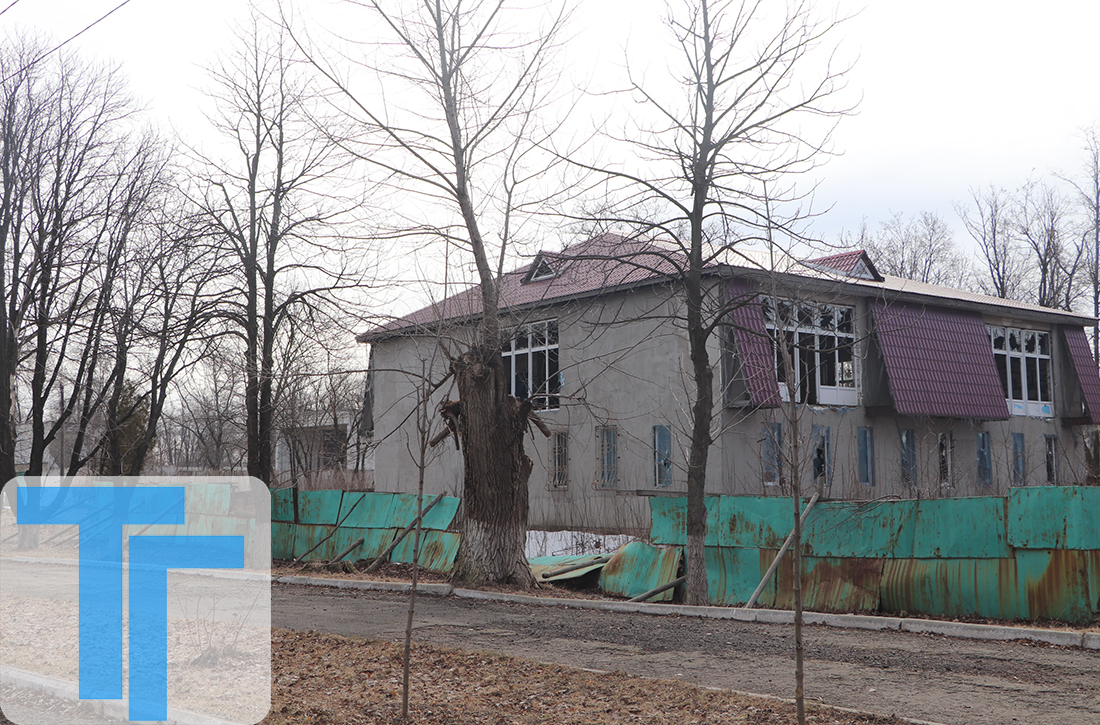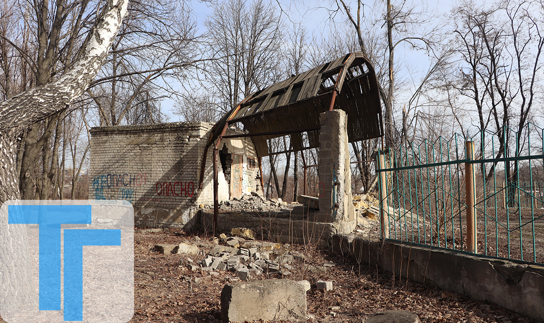 Есть в парке здания разной степени разрушенности. Сразу за мемориальной частью, слева, прячется в кустах и деревьях строение, узнать в котором бывший детский сад «Красная шапочка» уже невозможно. Что только ни хотели там разместить! Одна из версий – дом престарелых. Но в том, что от здания осталось, не поселить уже никого…