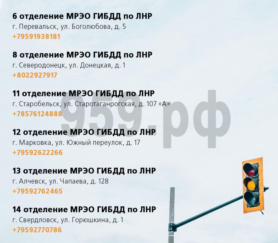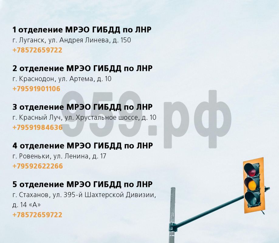 Для удобства жителей портал «959.РФ» собрал в одном месте актуальные адреса и телефоны отделений МРЭО на территории ЛНР.