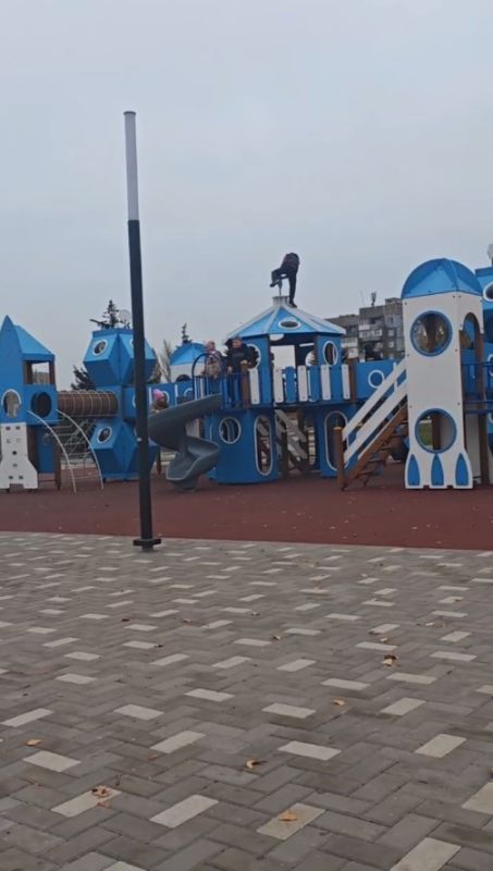 «Новая детская площадка в центре города. Видео прислали сегодня в адрес Администрации. На нем – школьники забираются на крышу детского космического городка, ломают элементы игрового комплекса и подвергают опасности свое здоровье.