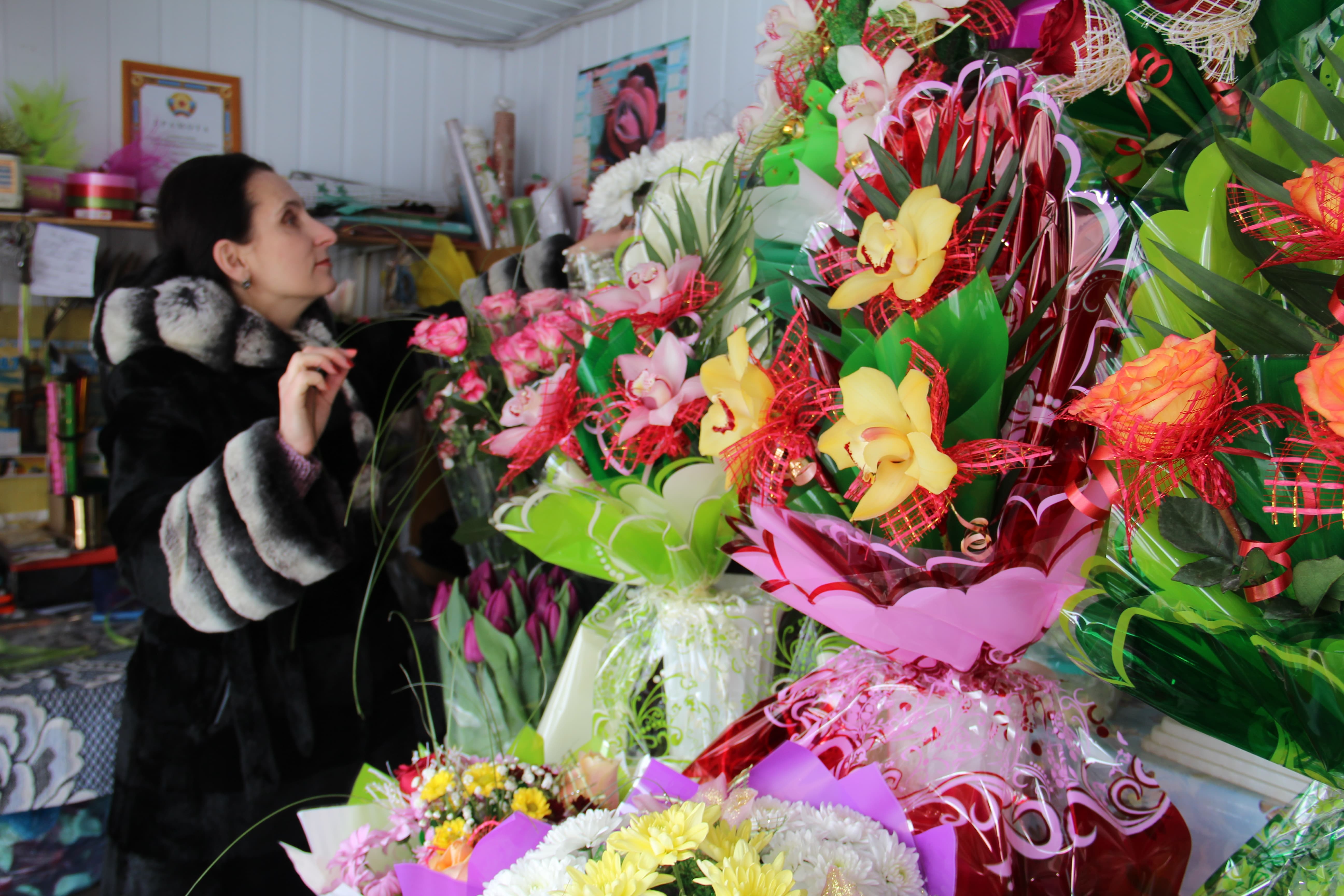 Пока мы торговали цветами, выяснили, что на 8 Марта все-таки большей популярностью пользуются розы (ну, королева цветов не может не нравиться большинству), хотя покупатели не обходят стороной тюльпаны, орхидеи, лилии. Тут все зависит от вкуса женщин. Но цены, скажем честно, «кусаются», поэтому мужчины частенько торгуются. Очень редко, когда молодой человек забежал, ткнул пальцем на букет и сказал: «Мне вон те цветы»! Хотя при этом все хотят какую-то изюминку, например, тюльпаны с мимозами или хризантему с ирисами. Просят композиции в виде «шляпки», или в корзинке, а иной раз – чтобы можно было поставить на стол. Покупатели часто просят совета. Сами не всегда могут определиться с выбором. Обычно букеты отличаются между собой, все зависит от того, кому он предназначается. Да и с букетами мужчины уходят по-разному: одни с цветами идут, как с веником, другие гордо и довольно торжественно.