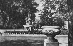 В парке были выложены дорожки, посыпанные песком, разбиты клумбы, установлены аттракционы и скамейки для отдыха.