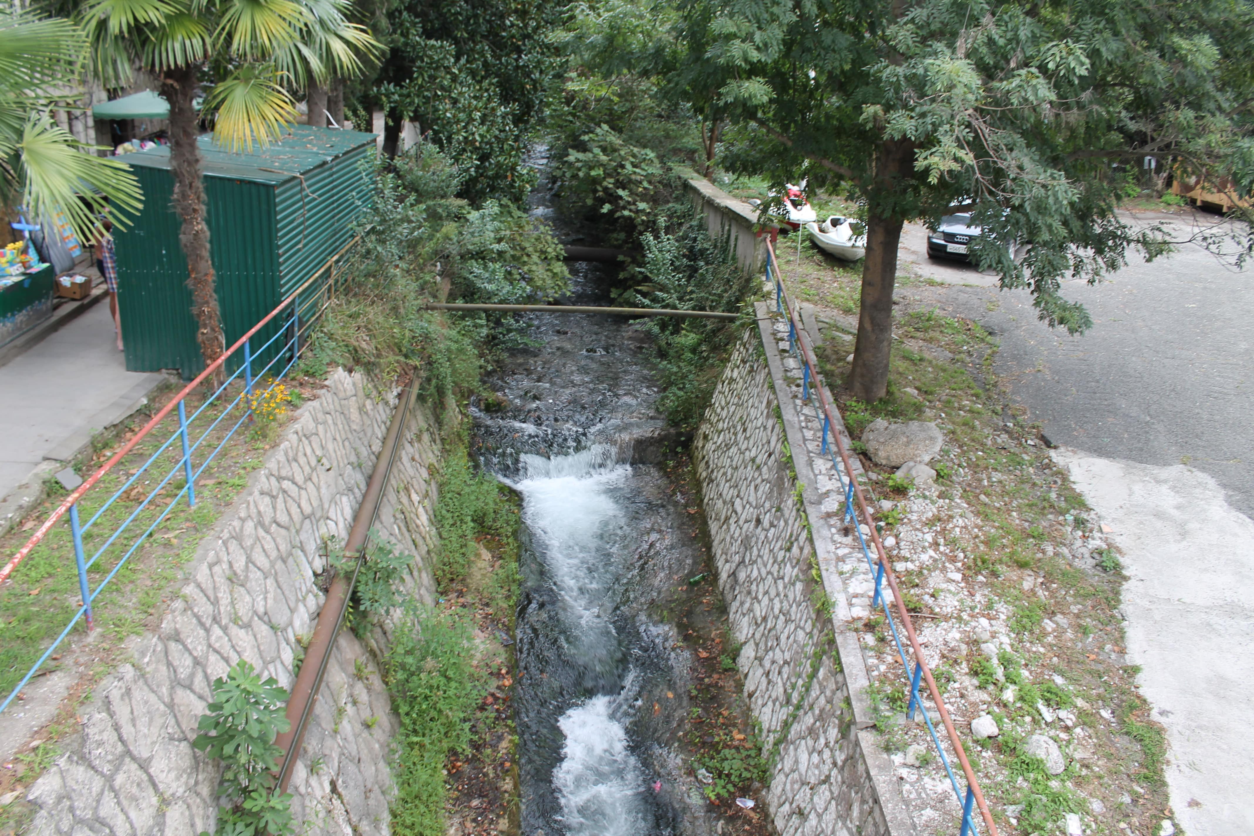 Недалеко от места нашей дислокации находится дача Сталина. Прогулка пешком доставила и огромное удовольствие – вид на море с высоты, природа, запах, горная речка и разочарование. Несмотря на то, что туда водят экскурсии, берут деньги, никто не поддерживает территорию в порядке. Газон перед домом зарос высокой травой. Мраморные плиты давно раскололись. Ступеньки разрушились. На вопрос охраннику, который и проводил нам экскурсию, почему не убирается территория, мы получили очень ясный ответ: «Это не мое дело».