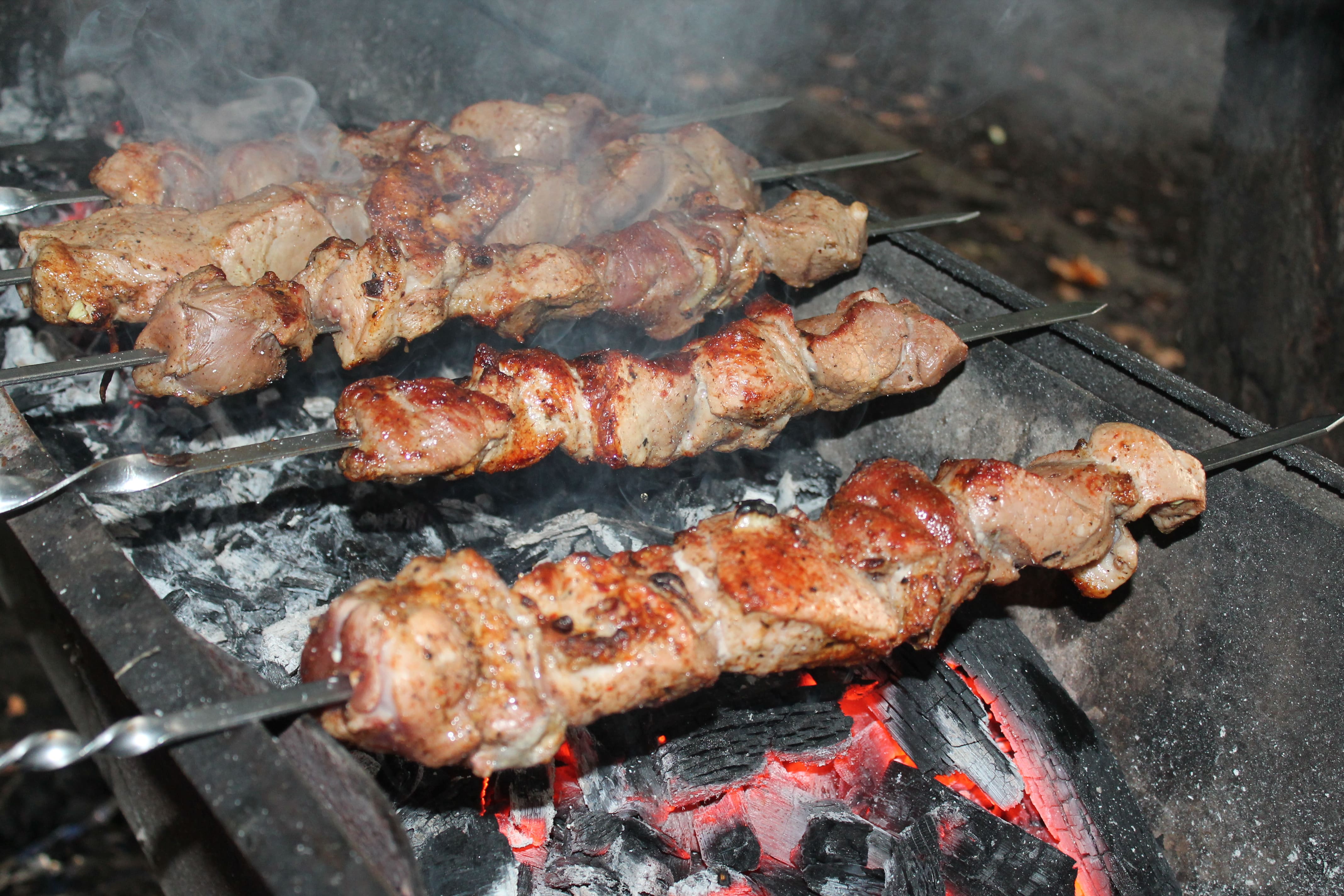 Кстати, о шашлыке. Жарят они его минут 10. Мясо получается очень ароматным и сочным, сок прямо течет. Но шашлык вкусный, пока горячий. Как только остыл, он становится жестким и каким-то «резиновым».