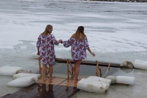После купания все желающие согревались наваристым кулешом и ароматным чаем. Праздник продолжили развлекательные мероприятия и силовые конкурсы.