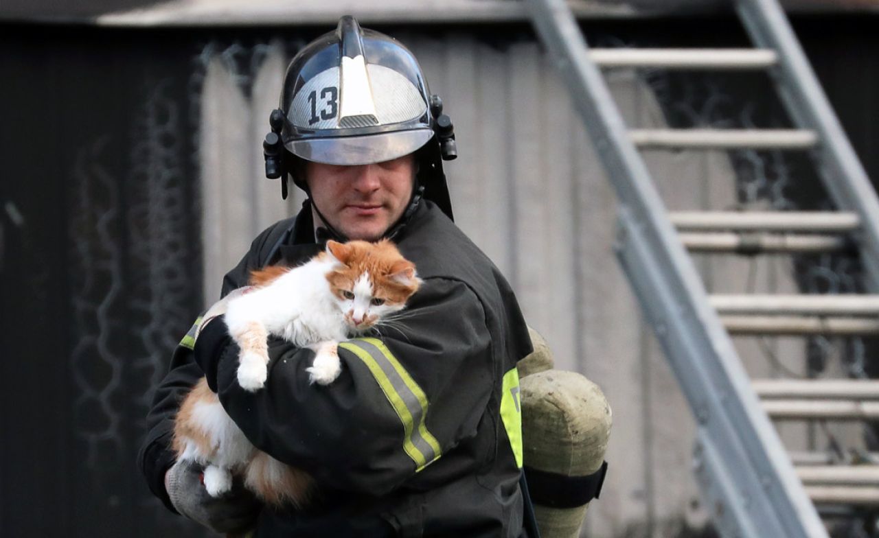 При пожаре в столице Республики пожарные спасли жизнь пострадавшему коту.