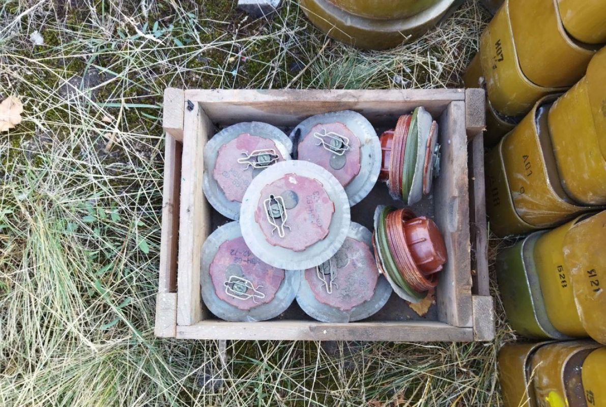 При проверке территории Лисичанска, направленной на выявление опасных предметов, сотрудники МВД ЛНР обнаружили возле одного здания три тротиловых шашки, три снаряда калибра 152 миллиметров, 12 подкалиберных снарядов калибра 125 миллиметров и 12 пороховых зарядов к ним, 10 снарядов калибра 30 миллиметров к БМП-2, 33 взрывателя к противотанковым минам ТМ-62М и противотанковую мину ТМ-62.