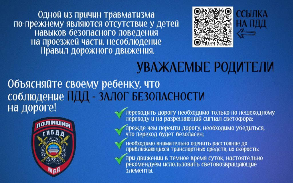 В связи с этим МВД напоминает о необходимости соблюдения правил дорожного движения детьми, в особенности во время предстоящих весенних каникул в школах.