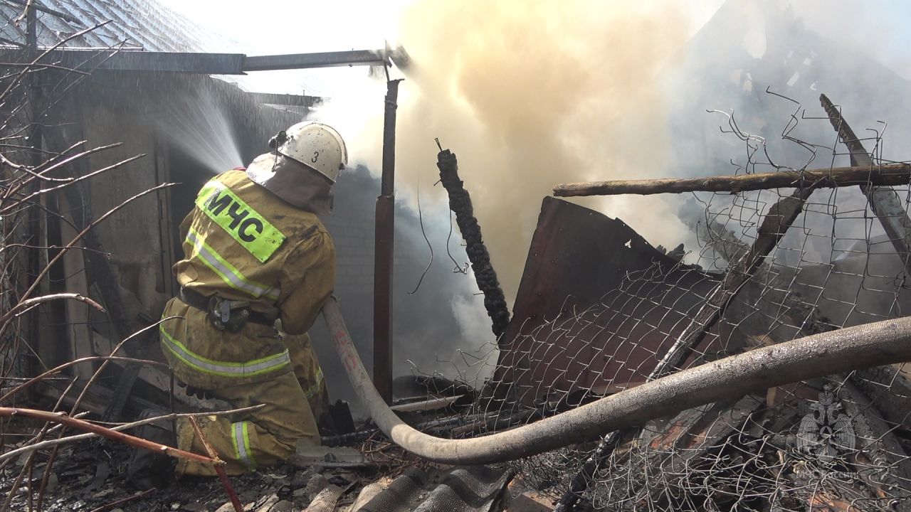 На момент прибытия спасателей вся постройка была объята пламенем, пылала крыша. Для тушения объекта использовали два ствола, одним проливали кровлю строения, другим отбивали пламя от рядом стоящего дома.
