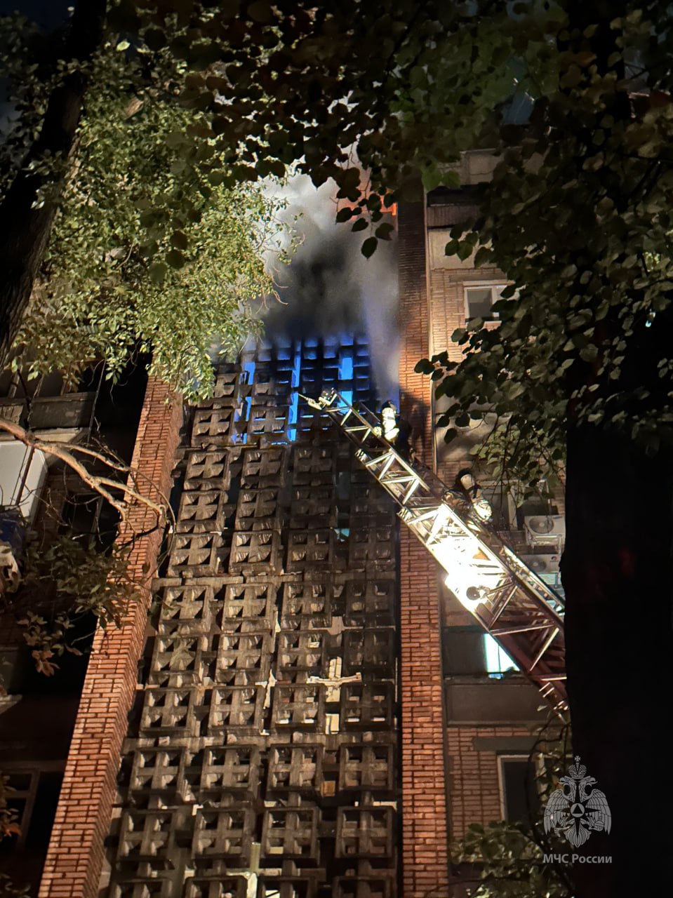 К месту вызова прибыли силы городских пожарно-спасательных частей № 1, №2, №4, специализированной пожарно-спасательной части, сотрудники ЦУКСа. Очаг возгорания находился между 6 и 7 этажами. Из-за крайней захламленности балконов пламя быстро достигло технического этажа на крыше и проникло на лестничные марши и площадки внутри дома.