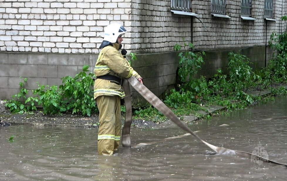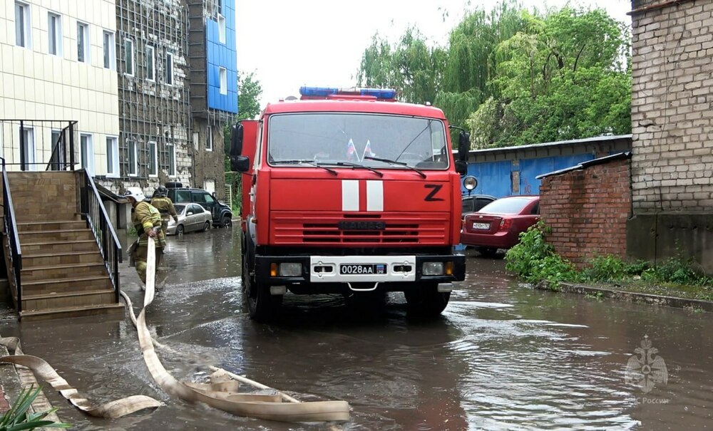 Сотрудники МЧС ликвидируют потоп в луганской больнице после ливня