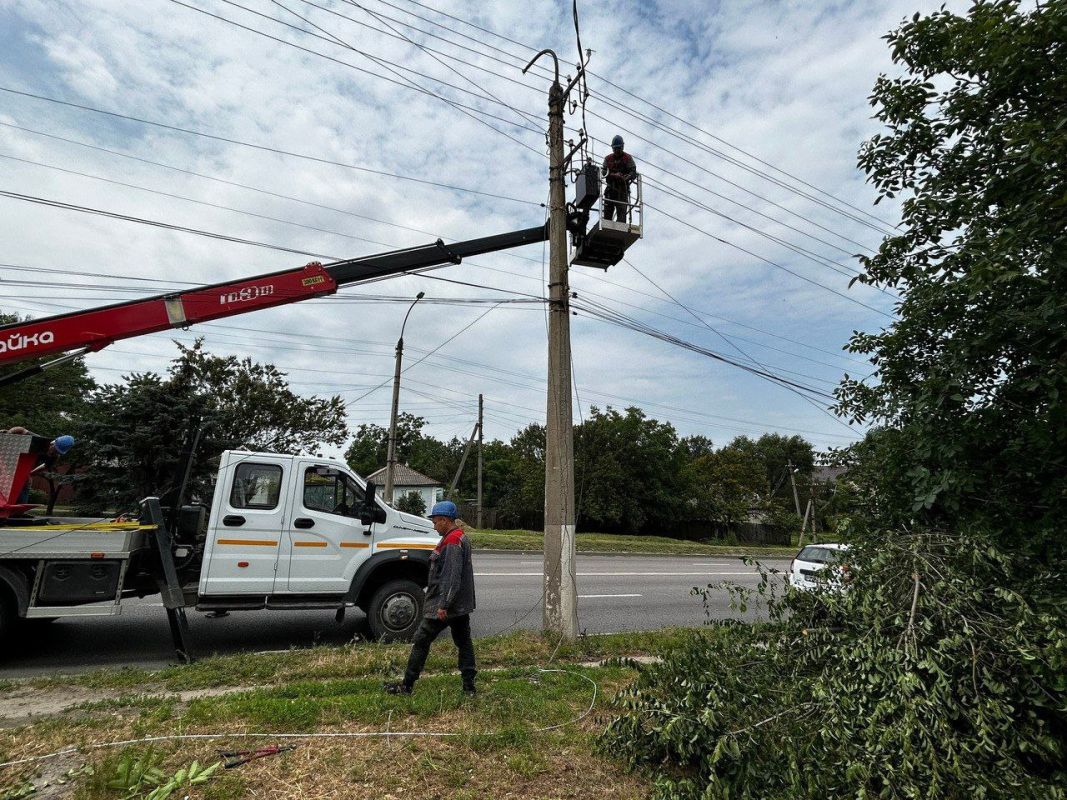 Работники Государственного унитарного предприятия Луганской Народной Республики «РСК» устраняют неисправности на энергообъектах Луганска, вызванные грозами и ветрами.