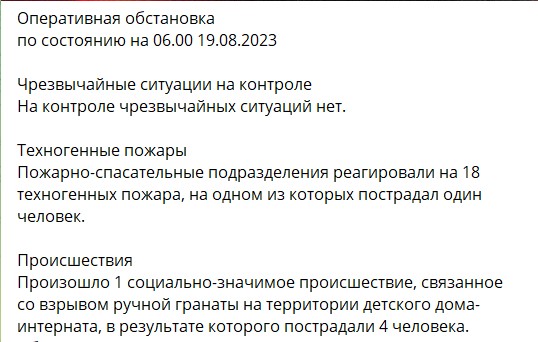 В ЛНР по состоянию на 19 августа произошло одно социально-значимое происшествие, связанное со взрывом гранаты на территории детского дома-интерната.