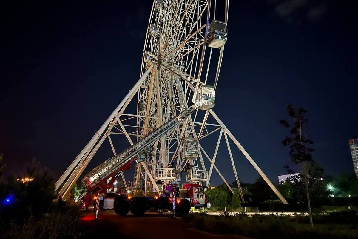 Инцидент произошел 29 сентября в городском парке «Победа». На сооружении на высоте 35 метром застряли шесть человек, включая одного ребенка. Спасателям удалось эвакуировать застрявших людей.