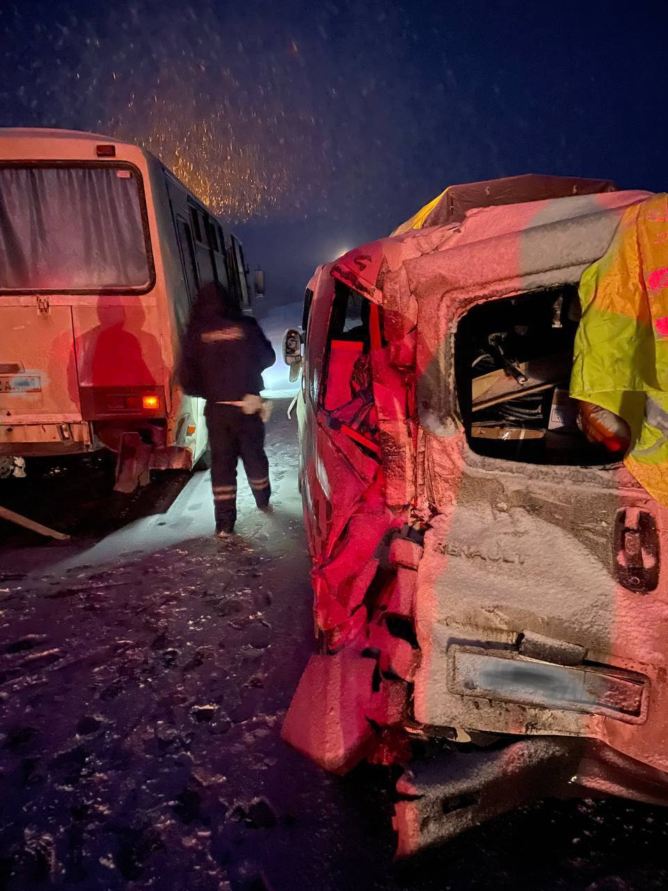 Указывается, что в результате сложной дорожной обстановки, обусловленной метеорологическими условиями, водитель автомобиля Renault Traffic на высокой скорости врезался в стоящий автобус Paz, который, выполняя поворот налево, предоставлял преимущество в движении встречному транспорту.