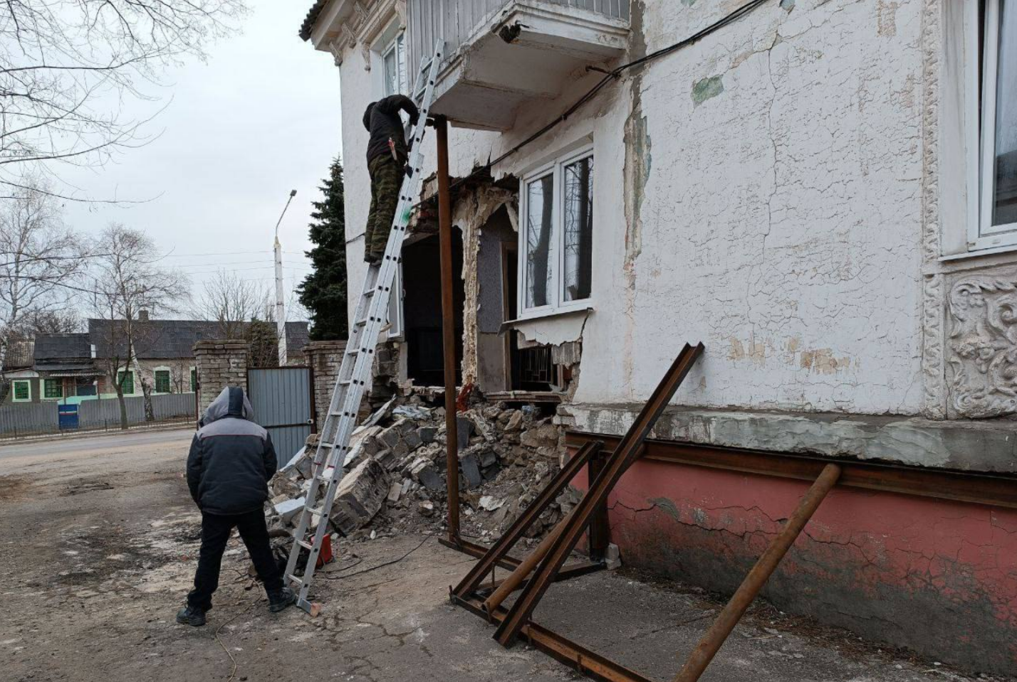 Обрушение произошло вчера, 3 марта. Пострадал дом по улице Октябрьской, 4. Сейчас сохраняется угроза обрушения стены в районе второго этажа.