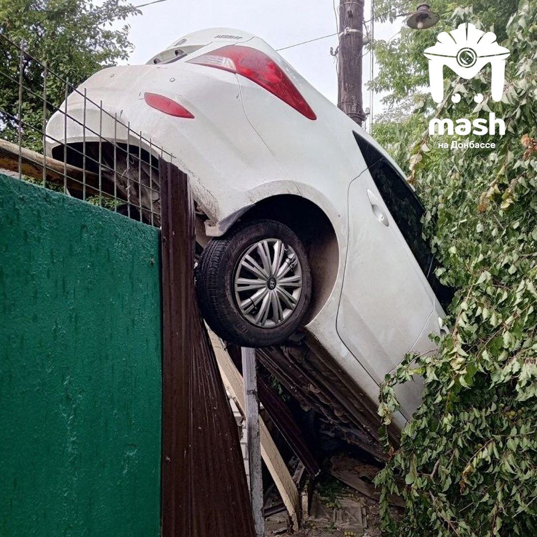 Вылетел с дороги и упал на забор домов: в Луганске произошло уникальное ДТП