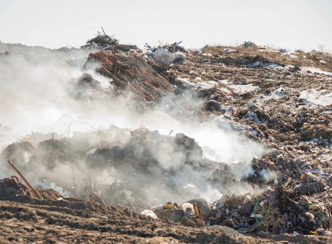 Открытое горение двух полигонов с твёрдыми бытовыми отходами в Алчевске и Красном Луче локализовано, спасатели приступили к засыпке территории шлаком.