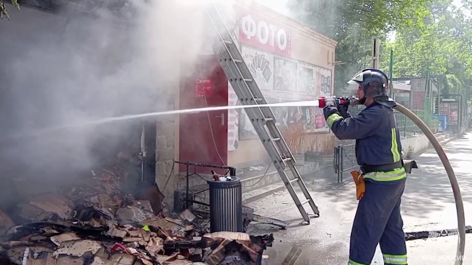 В Луганске спасатели ликвидировали возгорание киоска на улице Годуванцева.