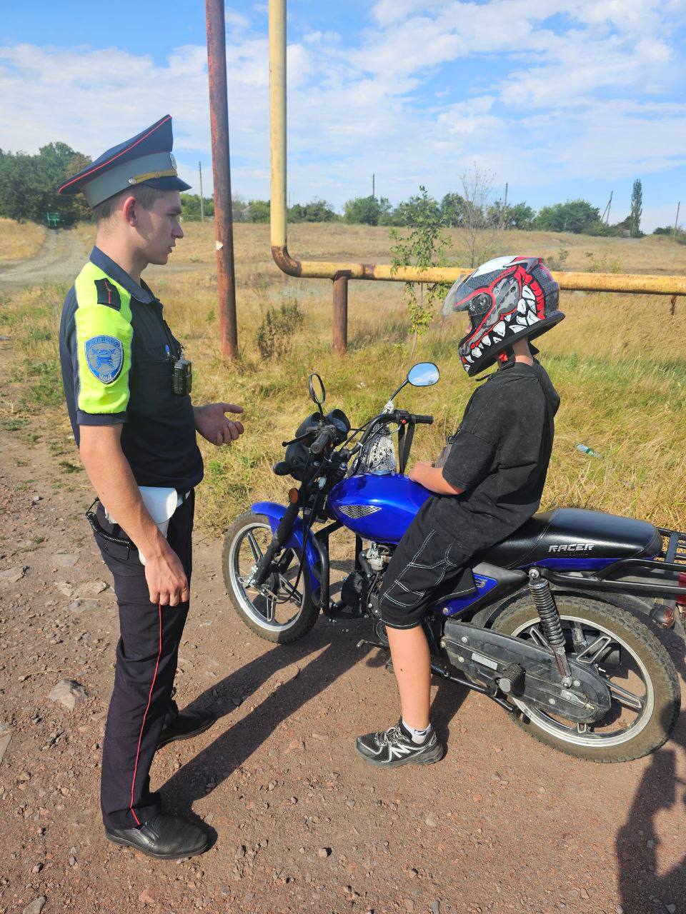 Сотрудники Госавтоинспекции ЛНР провели профилактическую беседу с несовершеннолетним водителем мопеда, у которого не было прав на вождение двухколёсного транспортного средства.