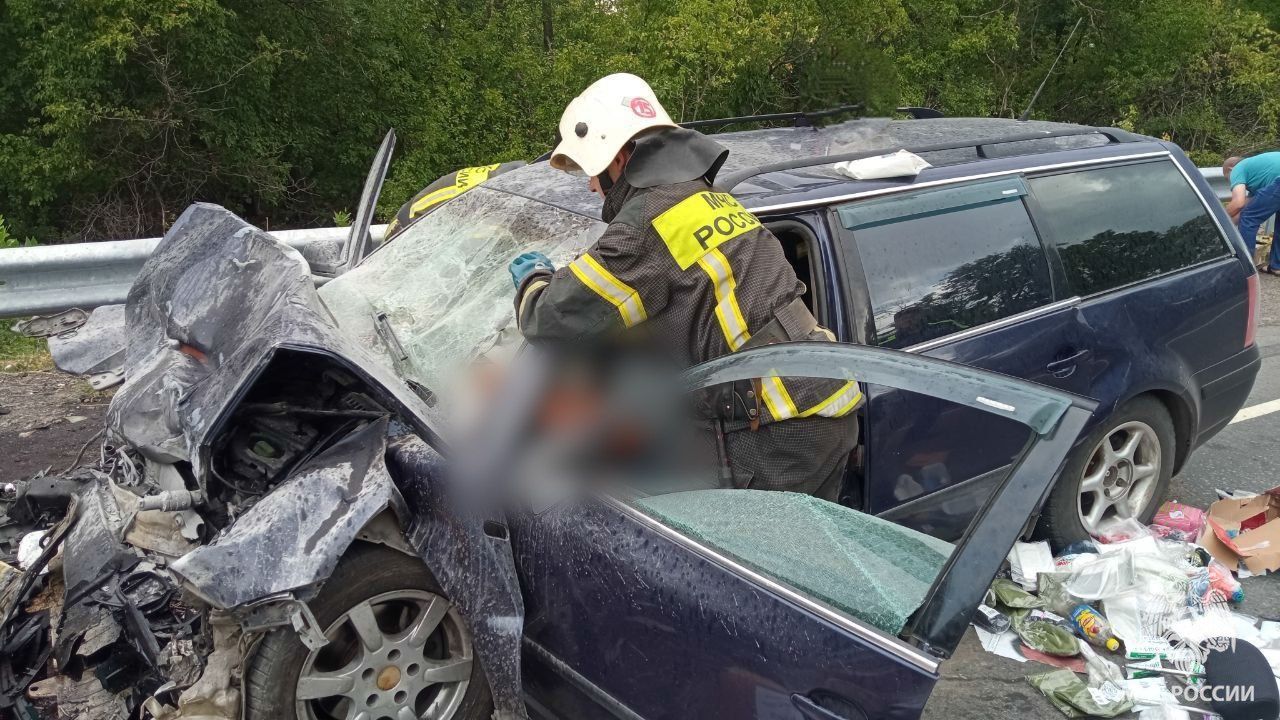 На месте происшествия работали силы и средства 15 пожарно-спасательной части МЧС России. При помощи специнструмента погибшие были деблокированы из деформированных автомобилей.